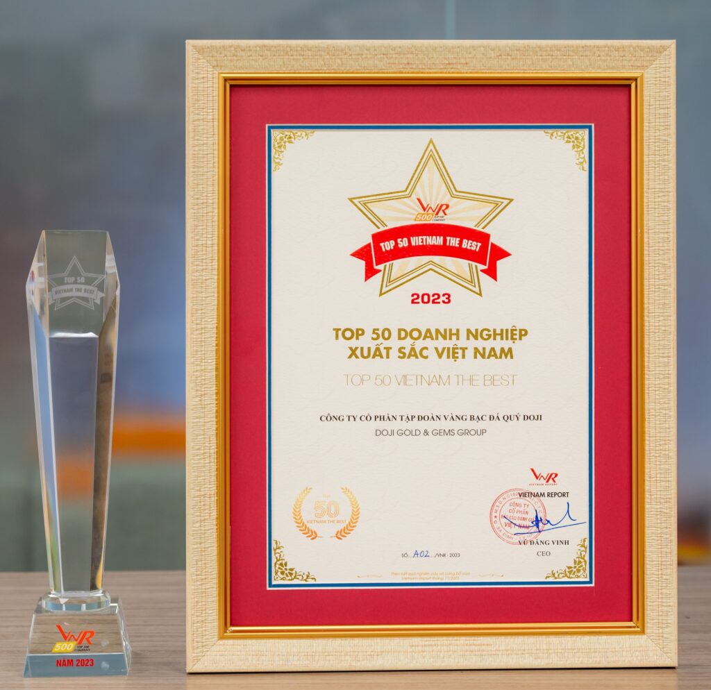 Đây là năm thứ 14 liên tiếp, Tập đoàn DOJI giữ vững vị thế Top 5 doanh nghiệp tư nhân lớn nhất Việt Nam. Cũng trong năm 2023, DOJI vinh dự đứng vị trí 18/500 doanh nghiệp lớn nhất của mọi thành phần kinh tế Việt Nam.