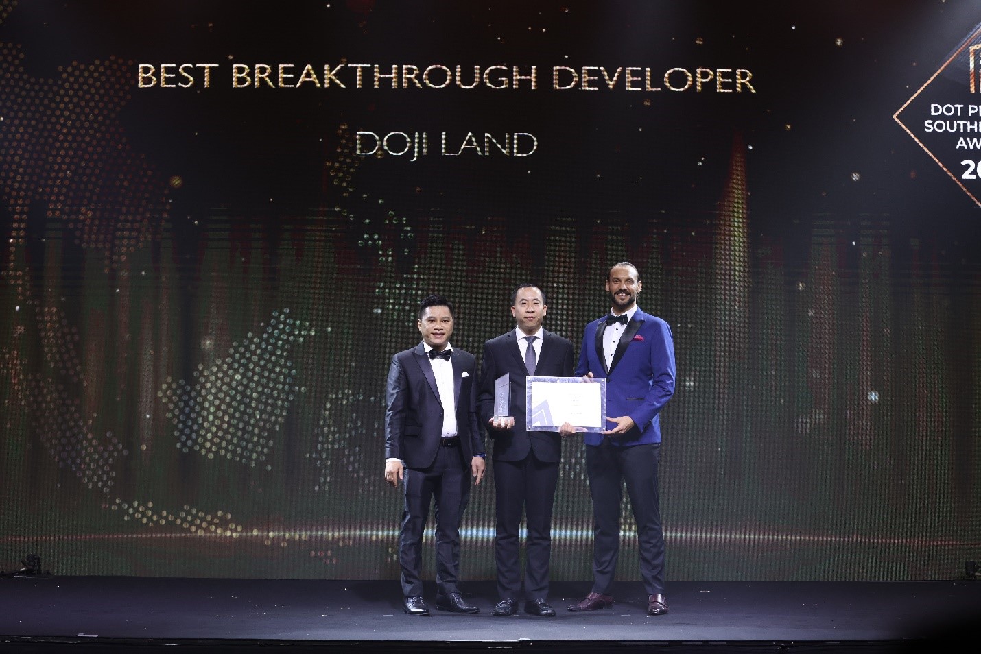 Mới đây, tại Lễ trao giải thưởng quốc tế Dot Property Southeast Asia Awards 2022 vừa được tổ chức tại Thủ đô Bangkok (Thái Lan), DOJI LAND đã vượt qua hàng trăm doanh nghiệp tầm cỡ trong khu vực để trở thành Nhà phát triển BĐS đột phá nhất Đông Nam Á 2022 – Best Breakthrough developer”. Đặc biệt, chỉ có DOJI LAND là doanh nghiệp của Việt Nam được vinh danh tại hạng mục giải thưởng này.