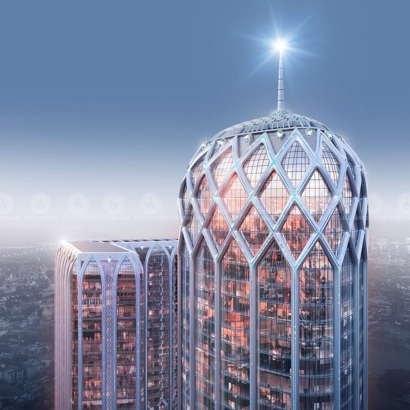Dự án Tháp đôi vương miện kim cương Diamond Crown Hai Phong của DOJI LAND là một trong những tòa tháp đôi đầu tiên tại châu Á sử dụng thiết kế mắt võng Diagrid kết hợp với những khối pha lê