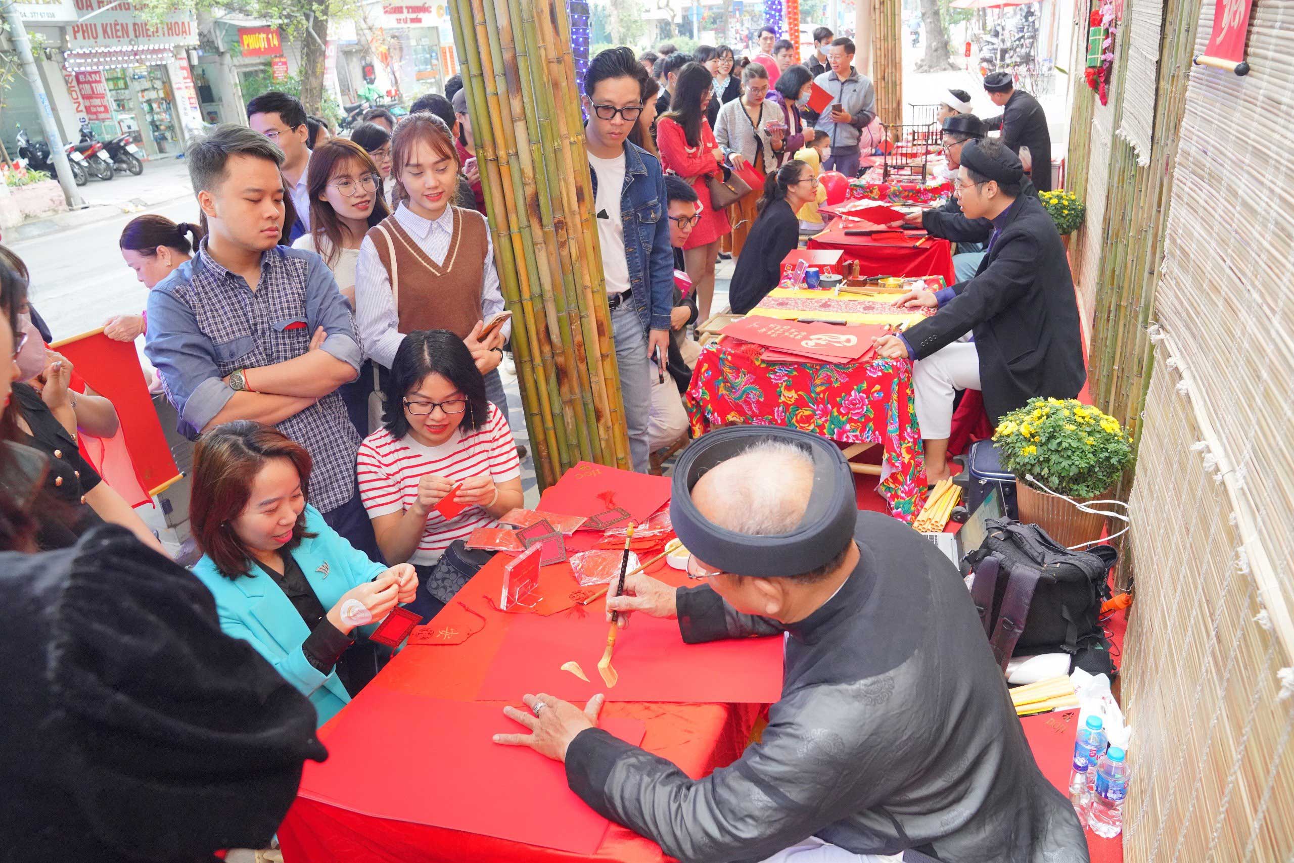 Gian hàng ông đồ cho chữ được đông đảo du khách hưởng ứng
