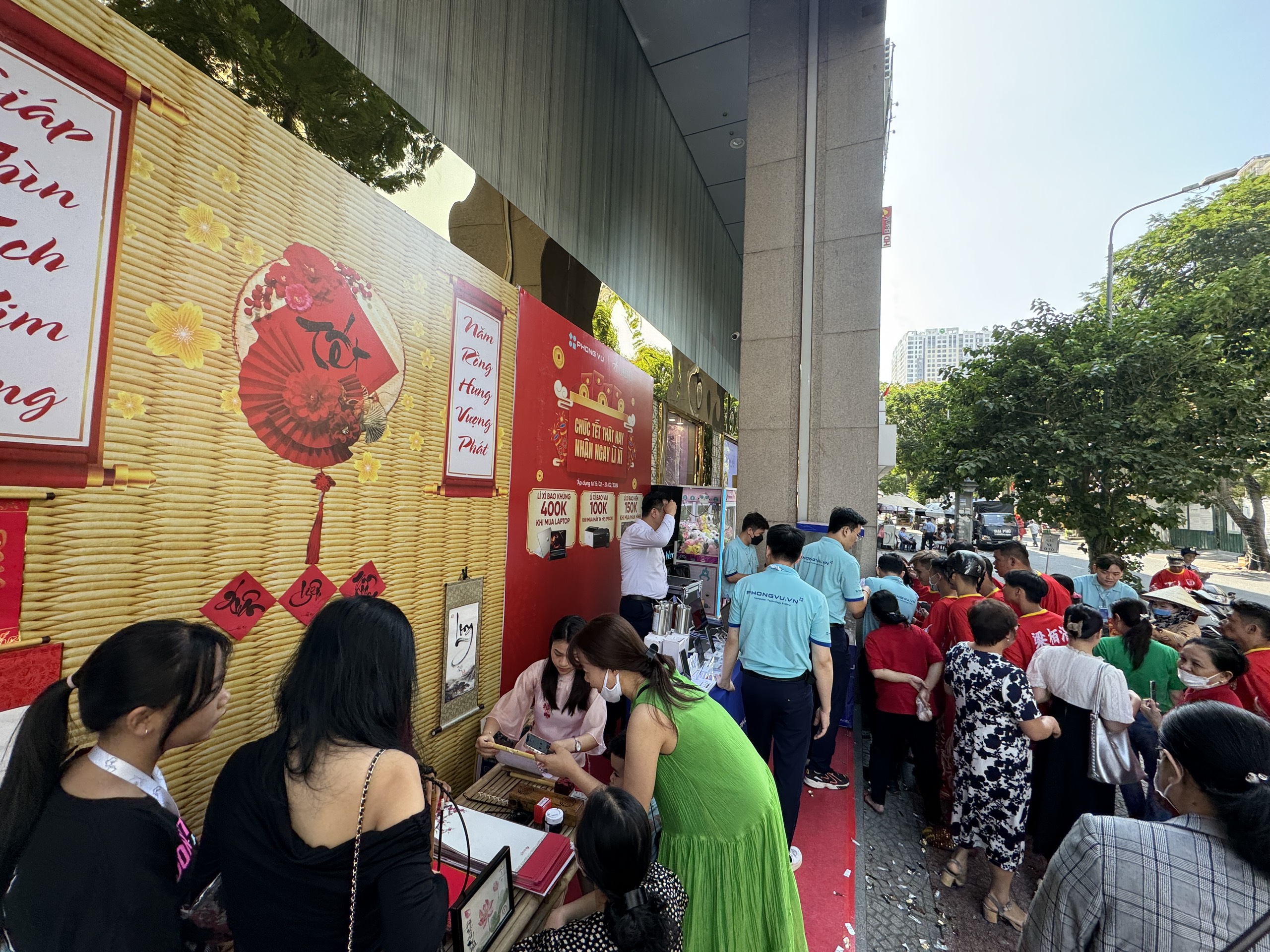 Khu vực tầng 16 thu hút rất nhiều khách ghé chân và trải nghiệm bởi đây không chỉ là nơi đổi quà check-in mà còn là không gian chợ xuân đặc sắc.