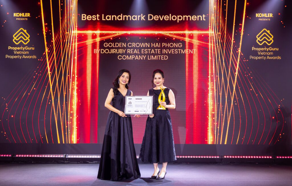 Và Golden Crown Hai Phong – Dự án biểu tượng xuất sắc nhất Việt Nam 2023 (Best Landmark Development) tiếp tục là một dấu ấn trên hành trình kiến tạo kiệt tác của DOJIRUBY. Đây là dự án thứ 2 trong dòng sản phẩm bất động sản kim hoàn của DOJIRUBY tại thành phố Cảng.